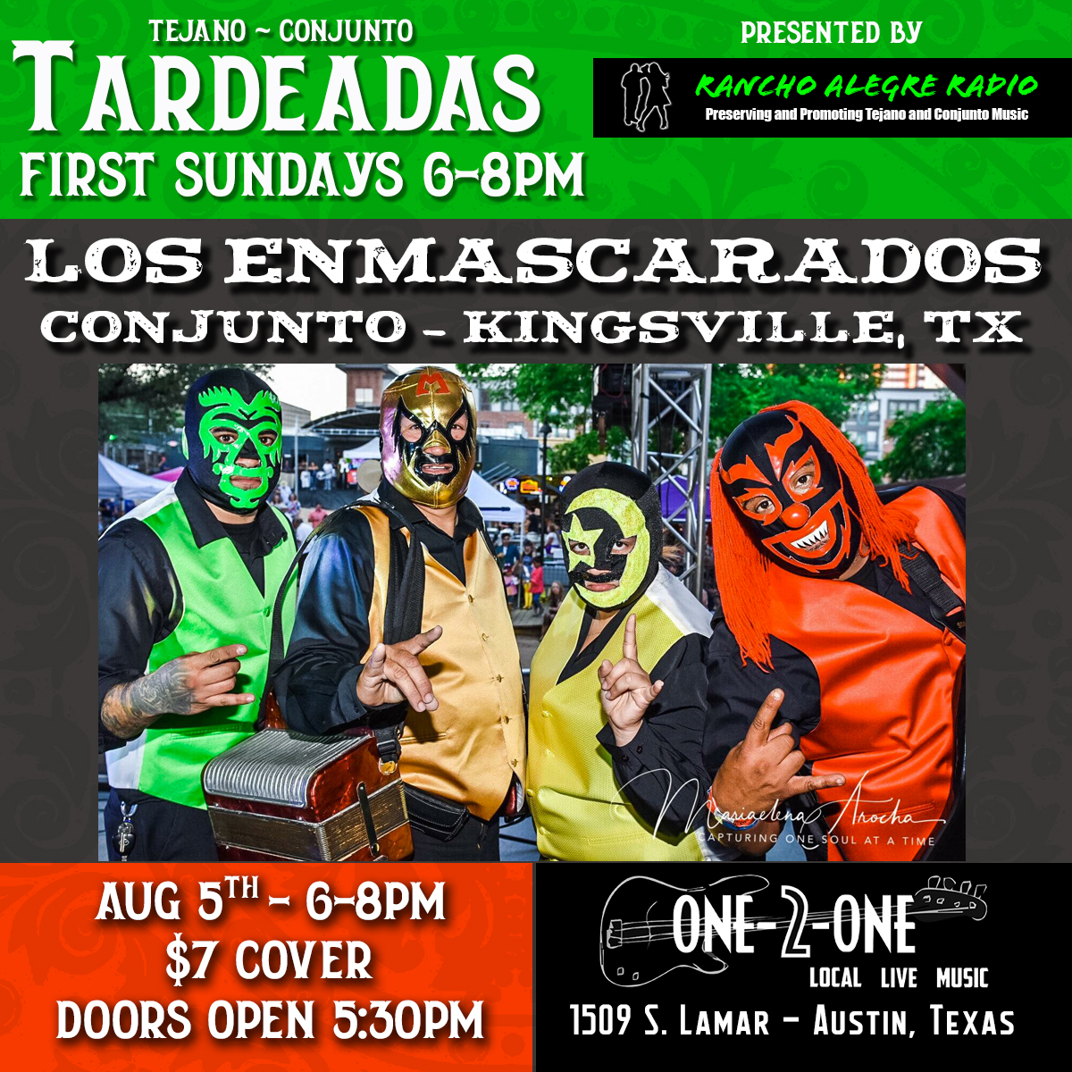 Sunday August 5th at One-2-One Bar, join Rancho Alegre Radio as we welcome back Los Enmascarados back to Austin!